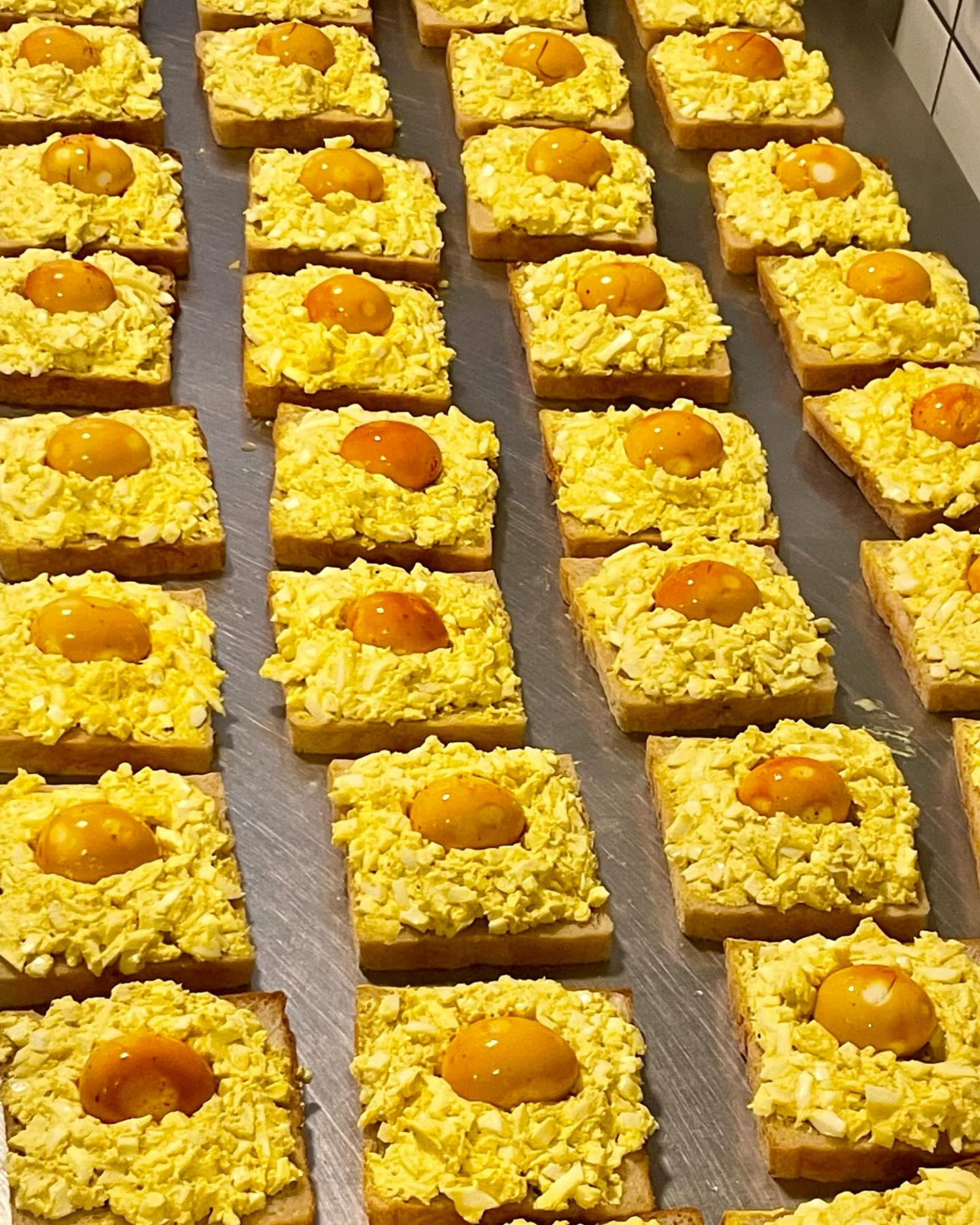 Blandt de populære valg finder man “Egg Salad” med æggesalat og syltet gurkemejeæg, samt “Ham & Cheese”, der kombinerer rosmarin- og fennikelskinke med fuldmåneost, syltede grøntsager, romainesalat, tomat og sennepsmayo. For dem, der foretrækker et vegetarisk alternativ, tilbyder “Veggie ‘Ham’ & Cheese” en innovativ kombination af røget, saltet og tørret rødbede og knoldselleri sammen med fuldmåneost og friske grøntsager.