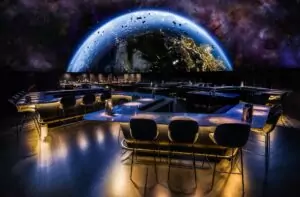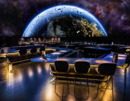 Gæsternes rejse begynder ved indgangen gennem massive bronzedøre, designet af den danske kunstner Maria Rubinke, som sætter tonen for den ekstraordinære oplevelse, der venter indenfor. Indenfor mødes man af en imponerende 18 meter bred kuppelsal, hvor 360-graders projektioner forvandler loftet til et levende lærred. Disse visuelle effekter skaber stemningsfulde scenarier, der spænder fra undersøiske landskaber med svævende vandmænd til kosmiske udsigter af jordkloden set fra rummet.