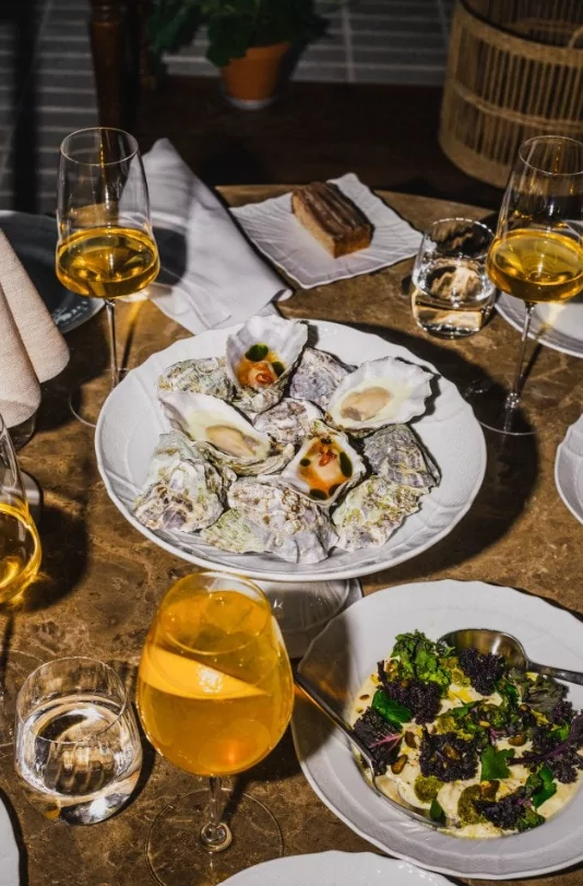 Menuen er baseret på små anretninger til social dining. Du finder både grillede skaldyr, fisk og veganske alternativer, alle tilberedt på Josper-grill for en let røget smag.