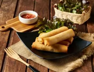 Menuen er fyldt med friske ingredienser og smage, der kombinerer syre, sødme, krydderi og umami på en harmonisk måde. Forretterne inkluderer sprøde forårsruller fyldt med glasnudler, friske grøntsager og svampe serveret med en sød chilisauce, samt lækre tempura rejer, dybstegt til perfektion og ledsaget af chilimayo.