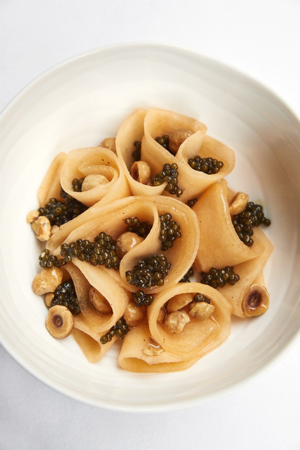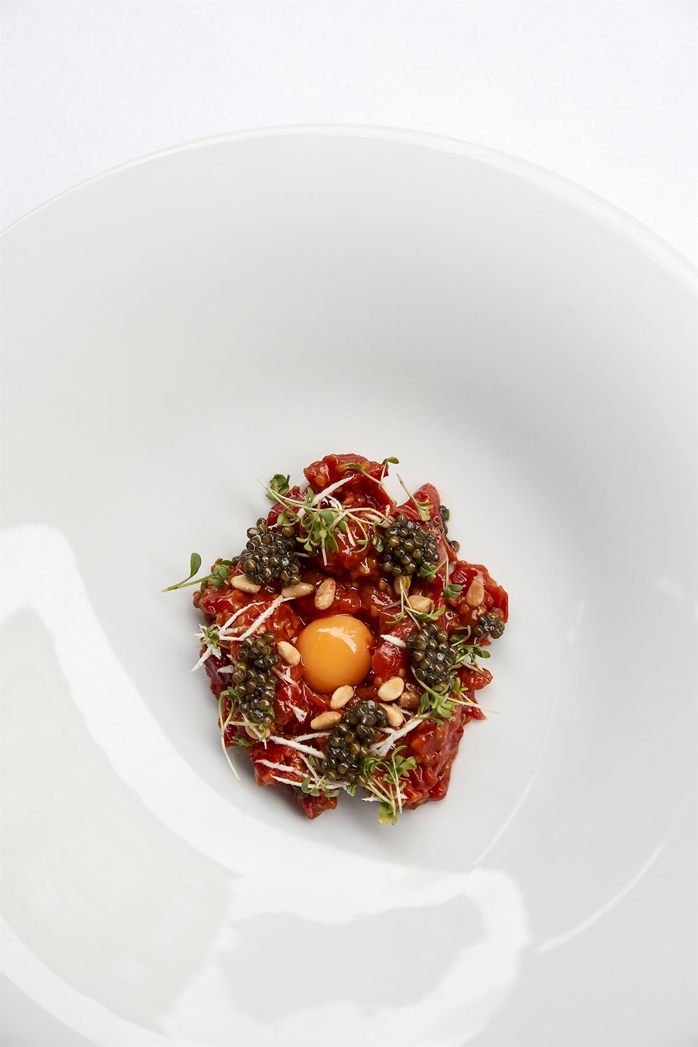 Bistro Boheme præsenterer en menu, der hylder det klassiske franske køkken med et moderne twist. Forretterne byder på delikatesser som 30 gram Rossini Black Label Caviar serveret med kefirfermenteret fløde, vagtelæg, brioche og rødløg, samt en variation af Perle Blanche-østers, der kan nydes naturel eller med forskellige smagsgivere som passionsfrugt-peber coulis og ponzu.