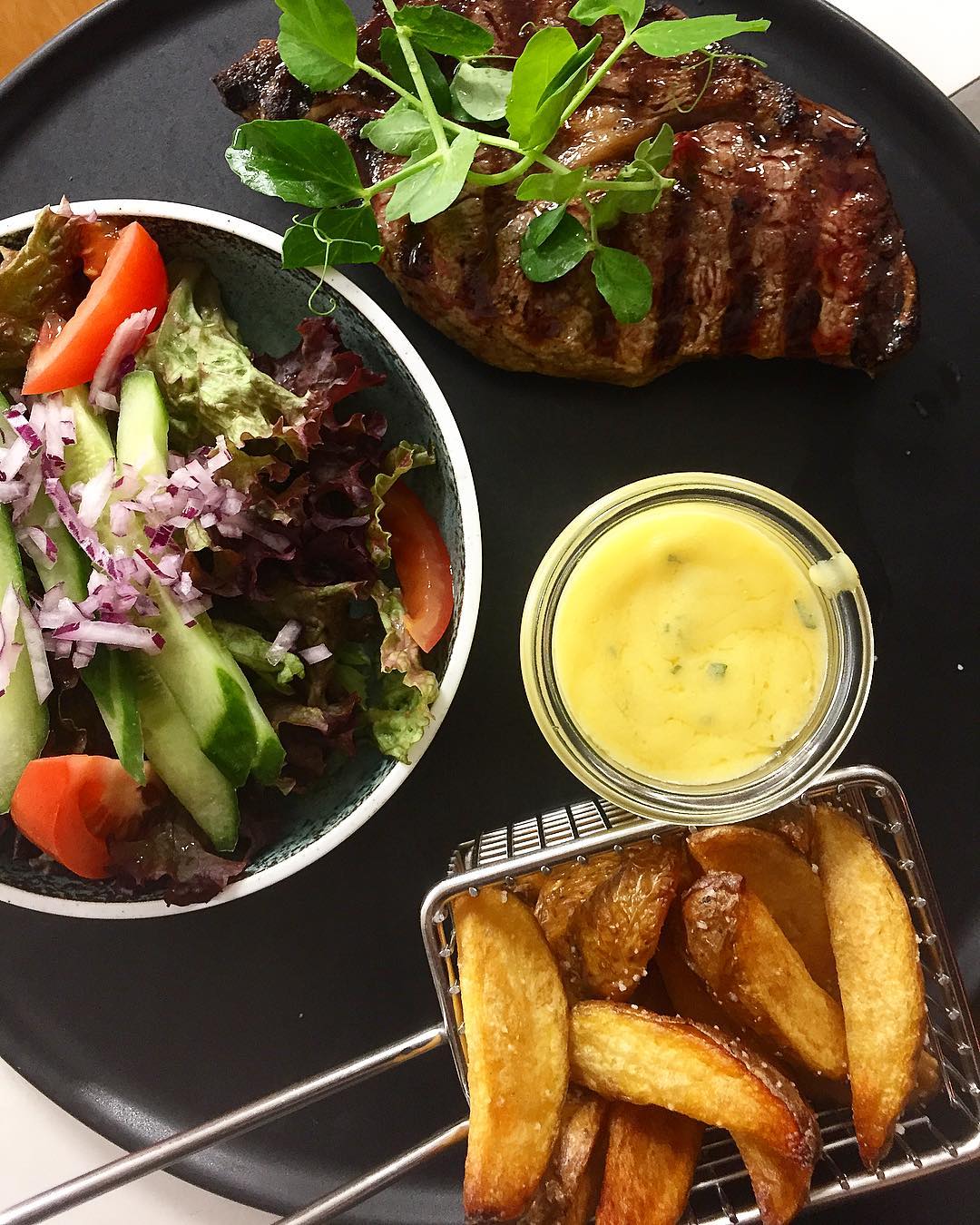 Bistroen byder på velsmagende retter såsom cæsar salat, burgere og ribeye af krogmodnet dansk kvæg. Den serveres med sprøde fritter, syltede tomater og en intens svampesauce. For de vegetariske gæster er der en hjemmelavet vegetarbøf i en friskbagt briochebolle, som er toppet med ost, syltede tomater, agurk og en krydret chilimayo.