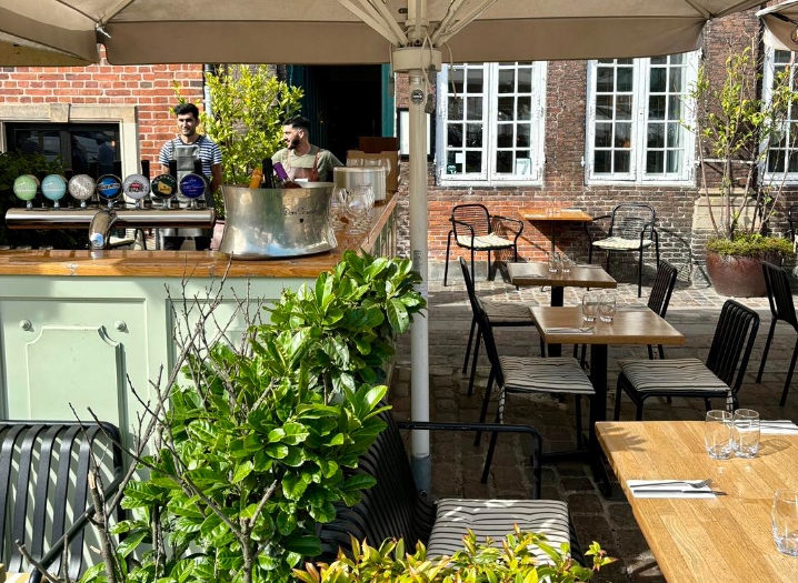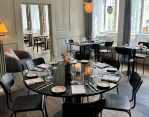 >Borde og stole er placeret med omhu, så små par kan finde deres egen krok, mens større grupper samles om lange træborde til samtaler og delte retter. Personalet bevæger sig lydløst mellem bordene med et smil og hurtige anbefalinger, uden at det nogensinde føles påtrængende. Om sommeren åbnes sidevinduer og markiser, og en mild brise fra kanalen kombineres med lanterners varme skær, så hver aften føles både livlig og rolig på én gang.