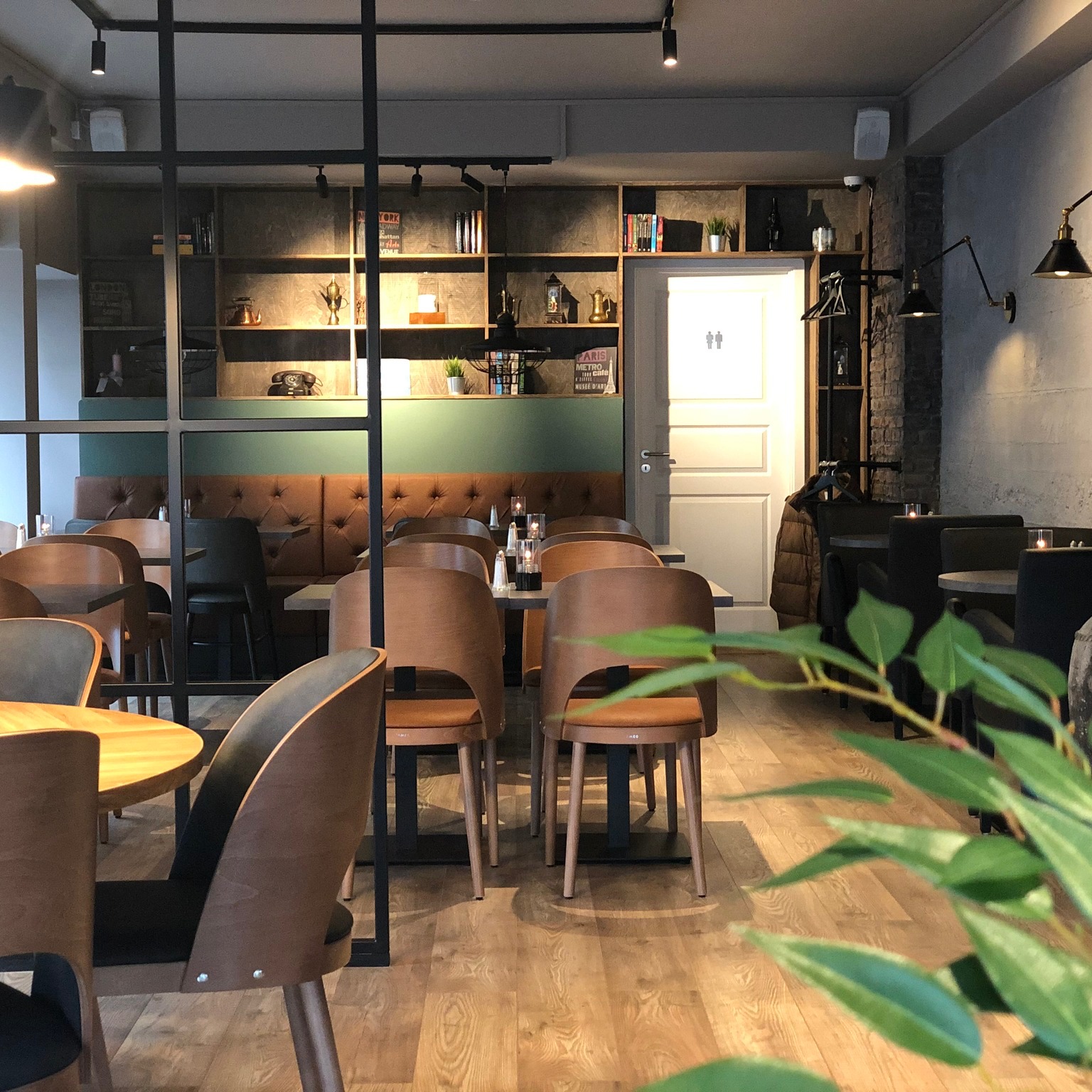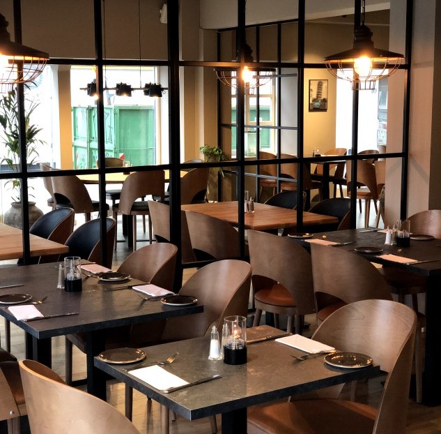Indendørs er caféen moderne og hyggeligt indrettet med komfortable stole ved smukke træborde og urbane loftslamper. De store vinduer langs hele caféen kan åbnes, så det føles som at sidde udenfor. ​