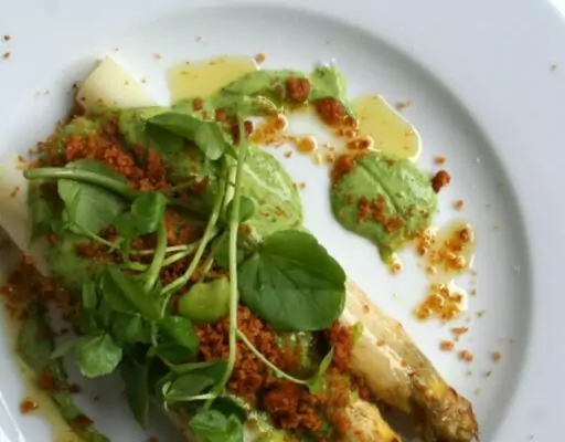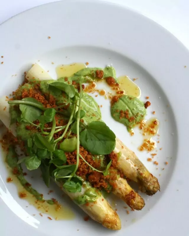 Aftenmenuen byder på forretter som charcuterie-tallerken og carpaccio af okseinderlår med rucola, parmesan og ristede hasselnødder. Hovedretterne spænder fra torsk med pastinakpuré og jomfruhummer-blanquette til ribeye steak fra Grambogård med Café de Paris-smør og pommes frites. Vegetariske muligheder inkluderer grillet blomkål med trøffel og hasselnødder samt orecchiette-pasta med tomatsauce og bagte cherrytomater.