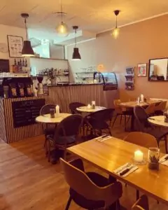 Træder du ind hos Café Fusion i København, mærker du straks en harmonisk stemning, hvor moderne design og varme detaljer mødes i en velafstemt helhed. Det stilrene interiør, dæmpet belysning og minimalistiske linjer skaber en sofistikeret atmosfære, der indbyder til både afslapning og nærvær. Her er der plads til samtaler, smil og gode øjeblikke – uanset om du er ude med venner, på en middag for to eller til et forretningsmøde i uformelle rammer.