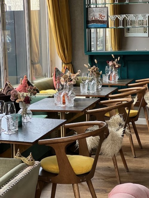Når du træder ind i Café Krøyers, bliver man mødt af en indretning, der emmer af pariserstemning. Genbrugsmøbler i velour og afdæmpede farver skaber en hyggelig og intim atmosfære, hvor man straks føler sig hjemme.