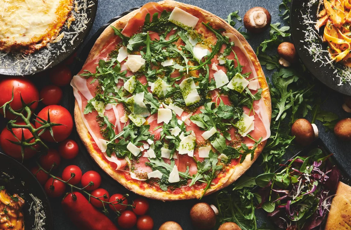 Pastaen serveres al dente og ledsages ofte af en frisk salat og hjemmebagt italiensk brød, hvilket bidrager til en fuldendt spiseoplevelse. Pizzaerne er sprøde og velsmagende, og salaterne er friske og velkomponerede. Derudover tilbyder caféen vegetarvenlige valgmuligheder og takeaway-service, hvilket giver fleksibilitet til dem, der ønsker at nyde maden hjemme eller andre steder.