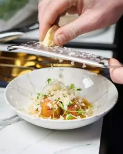 Capa er kendt for at tage velkendte retter og give dem et moderne twist. Med fokus på kvalitetsråvarer og kreativitet præsenterer køkkenet en menu, der både overrasker og begejstrer. Et eksempel er deres signatur carpaccio, skåret af oksemørbrad fra Sashi og serveret med fermenteret hvidløg og dansk havgus – en ret, der balancerer det klassiske med det innovative.