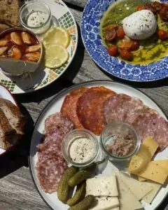 Deres populære delebræt indeholder en skøn kombination af ost, pølse, rillette, surt og dijonnaise – et perfekt valg for dem, der ønsker lidt af det hele. Man kan også vælge en mindre udgave med enten pølse og rillette eller en ren ostetallerken, begge serveret med surt som en frisk kontrast til de cremede og salte elementer.