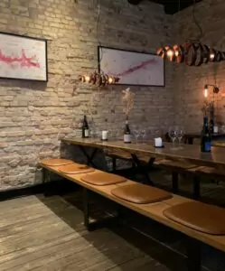 Stemningen på Cork Vinbar er hyggelig og indbydende, hvilket gør den ideel til både afslappede sammenkomster og særlige lejligheder.