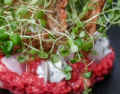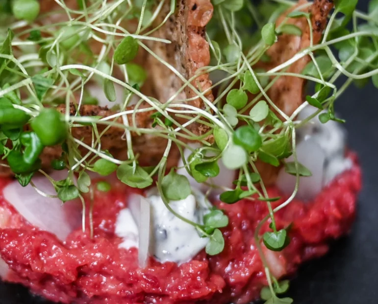 Bistroens smørrebrød er langt fra standardudgaverne. Her kombineres klassisk rugbrød med innovative pålægskombinationer som confiteret and med syrlig rødkålskompot og ristede hasselnødder, eller røget makrel med urtemayonnaise og sprøde urter, der tilfører både friskhed og bitterhed. De gratinerede kartofler med tre oste smelter under et skær af ristet skorpe, mens en carpaccio af okse i tynde skiver smager af rig umami, med peberrodslirte rucolablade og sprødstegt parmaskinke som kontrast.