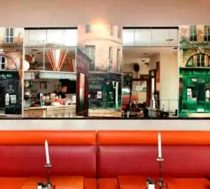 Den Franske Café emmer af en afslappet og hyggelig atmosfære, der straks får gæsterne til at føle sig velkomne. Den rustikke indretning, der kombinerer franske bistro-klassikere med danske designinfluenser, skaber en varm og indbydende stemning. Med sine træborde, retro lamper og de bløde, velkendte lyde af fransk musik i baggrunden, formår caféen at transportere sine gæster til en lille bistro i Paris – men med en helt særlig nordisk twist.