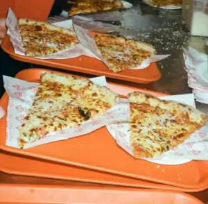 Deres menu byder på en række velsmagende pizzaslices, herunder den populære Cheese Slice med tre oste og tomatsauce, samt Hot Honey Slice, der kombinerer tre oste med hvidløg, double cream og hot honey.