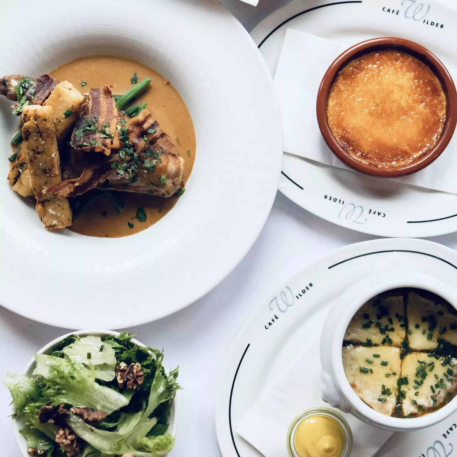 Cafe Wilder har en hyggelig og hjertevarm atmosfære. Det er en uformel restaurant, hvor snakken går, og hvor du vil få lyst til at hænge over en ekstra pastis i baren eller nyde varmen under lamperne udenfor.