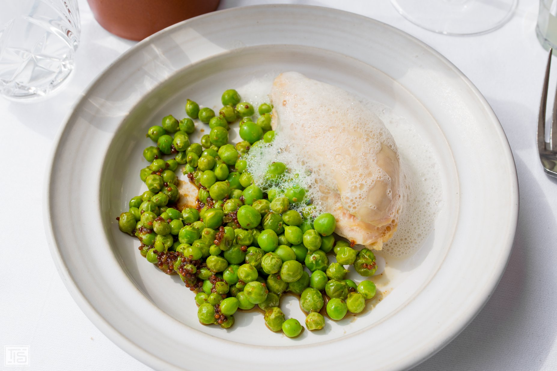 Blandt hovedretterne findes signaturretter som ceviche af guldbrasen serveret med endivesalat og tre forskellige saucer, der tilbyder en frisk og syrlig smagsoplevelse. Derudover byder menuen på grillet rødmulle med sauce vierge, oliven og tomater, hvor fiskens naturlige smag fremhæves af de lette og aromatiske tilbehør.
