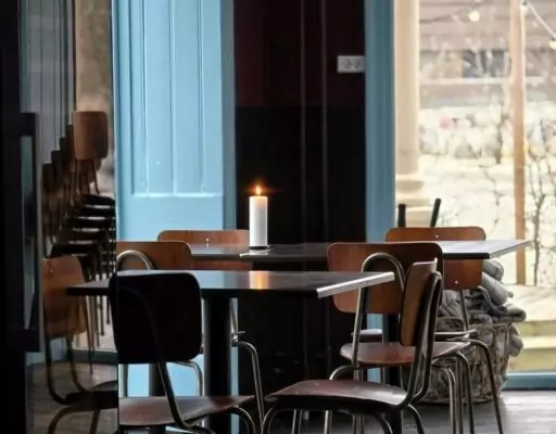 Møbleringen er kompakt, men aldrig trang. Små keramikbænke og enkeltstående træstole er placeret, så du kan vælge mellem at være tæt på køkkenets summen eller trække dig lidt tilbage i et hjørne med udsigt til en lille plantekasse fyldt med vilde urter. Her er ingen lange borde, der opfordrer til støjende fællessang, men snarere intime grupper, hvor duften af naboens ret sniger sig ind som et nysgerrigt kompliment til din egen oplevelse.