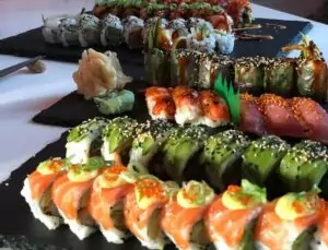 Sushi-udvalget er omfattende og varieret. Hosomaki-rullerne tilbyder enkle smagsoplevelser med fyld som laks, tun, avocado og agurk. Uramaki-rullerne tager det et skridt videre med kombinationer som “Ebi Tempura” med sprøde rejer, avocado og chilimayo, og “Ny Philly” med laks, flødeost, avocado og agurk.