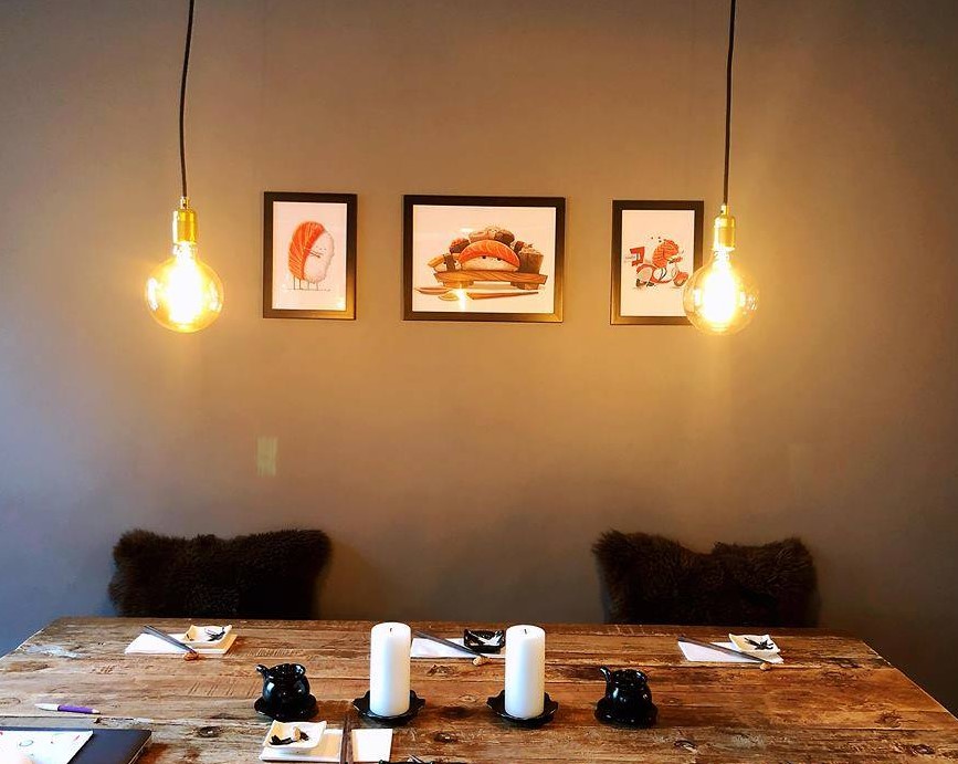 Indretningen hos Fusion Monkey er enkel med japanske elementer og det er tydeligt, at her handler det om maden.