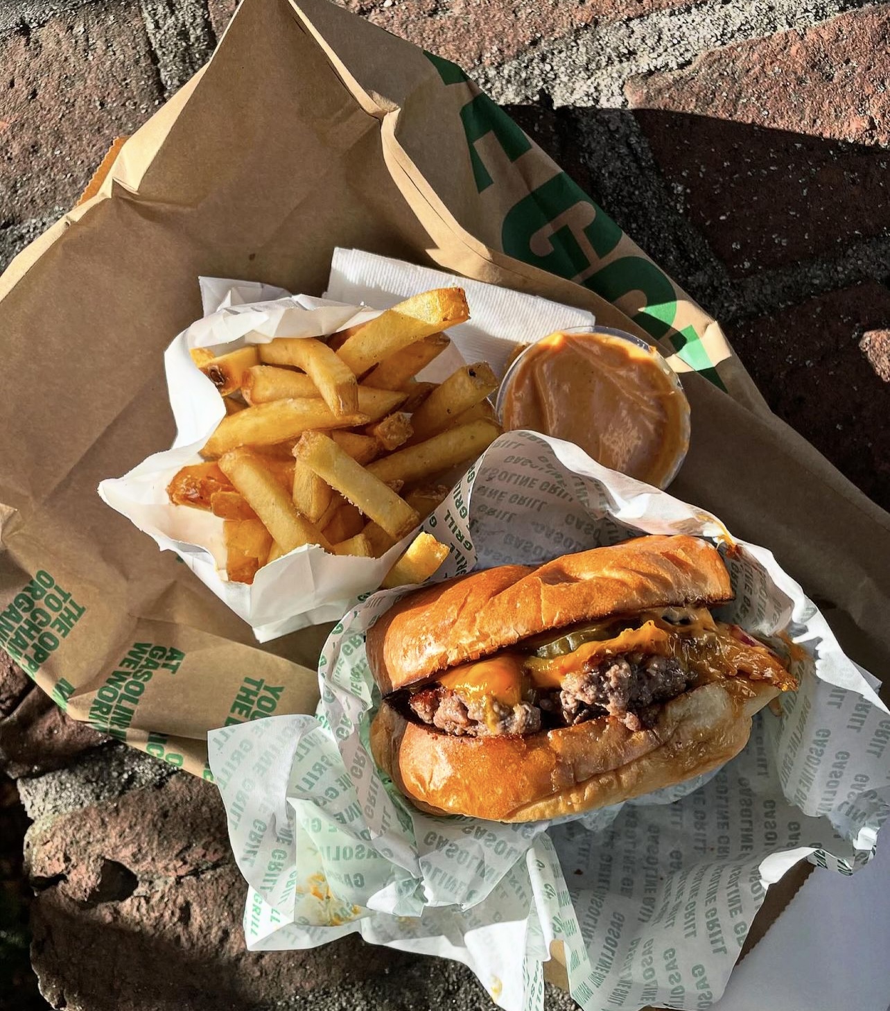 Her finder man klassikere som cheeseburgeren og den originale burger med sprød salat, tomat, pickles og signatursauce – alt sammen serveret i en blød, smørbagt bolle. Bøfferne steges hårdt og hurtigt, så de får den karakteristiske stegeskorpe, mens midten forbliver saftig.