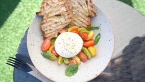 Ud over pizzaer tilbyder køkkenet grillede sandwiches, hvor den saftige Steak-sandwich med chili-mayo og grillede artiskokker er et trygt valg, og Ham & Cheese-versionen med digekrone, pesto og rucola favner både det velkendte og det overraskende. For dig, der søger en let starter eller vegetarisk bid, er Burrata Plate et blødende møde mellem fløjlsblød ost, syrlige tomater og sprødt surdejsbrød, og Mixed Snacks dækker et udvalg af oliven, ristede nødder og hjemmekomponeret rød peber-pesto på ryebridchips. Skyr med granola og bærkompot giver en frisk afrunding til måltidet, mens hjemmelavet lemonade i varianter som hindbær, rabarber og hyldeblomst kaster en sød og syrlig kontrast ind i det salte univers.