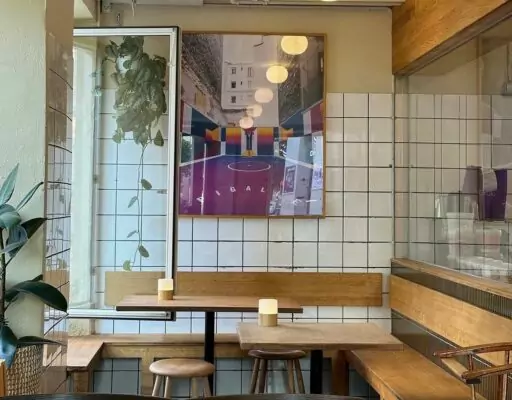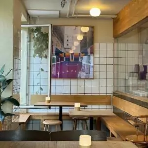 Måske fordi stedet ligger mellem butiksliv og metrostation, føles det som et naturligt åndehul. Her kan man sætte sig et kvarter eller en time, uden at det føles som om man skal skynde sig videre.