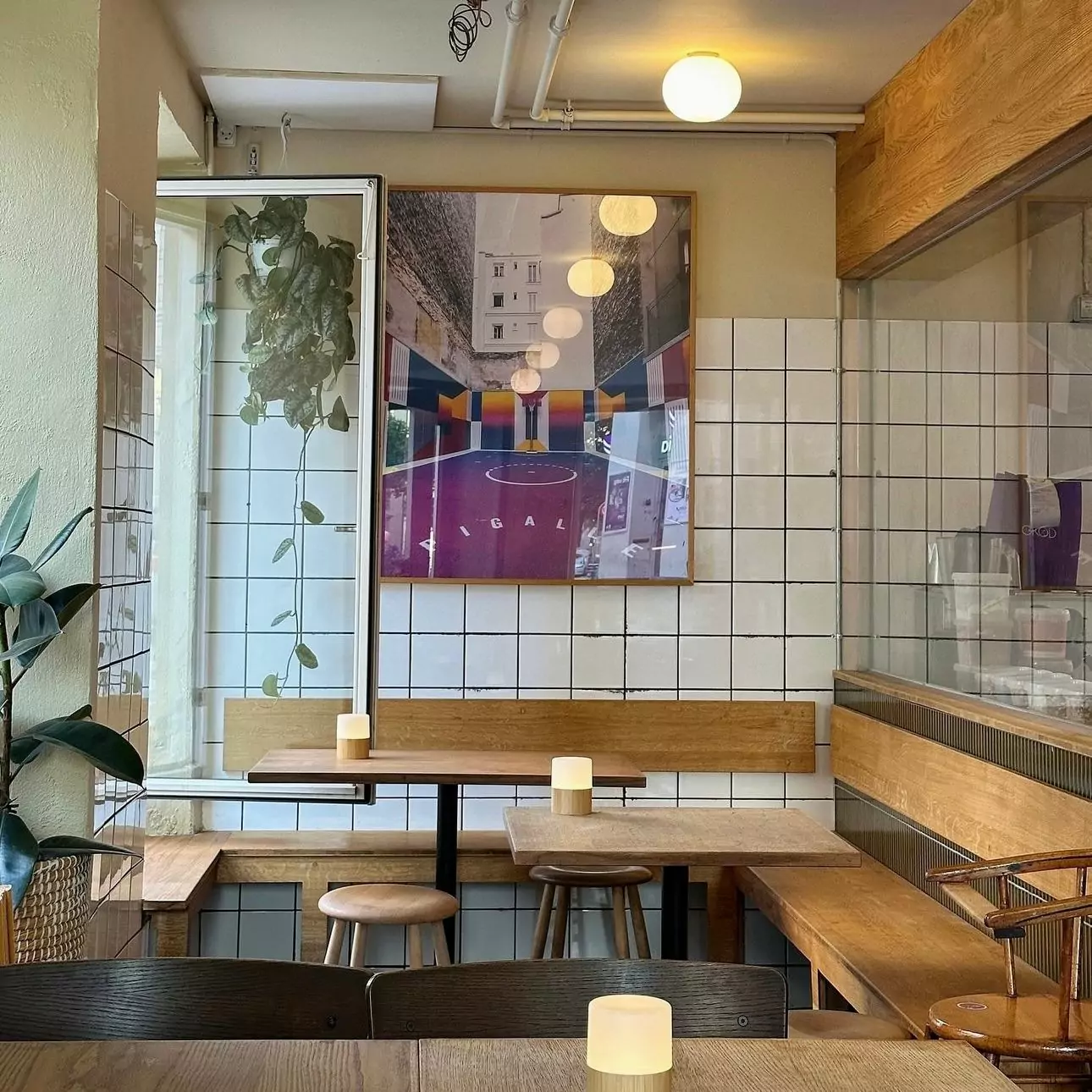 GRØD Frederiksberg ligger i et travlt område, men indenfor sænker tempoet sig. Lokalet er lyst, luftigt og åbent, med store vinduer mod Falkoner Allé og en enkel indretning, der skaber ro.