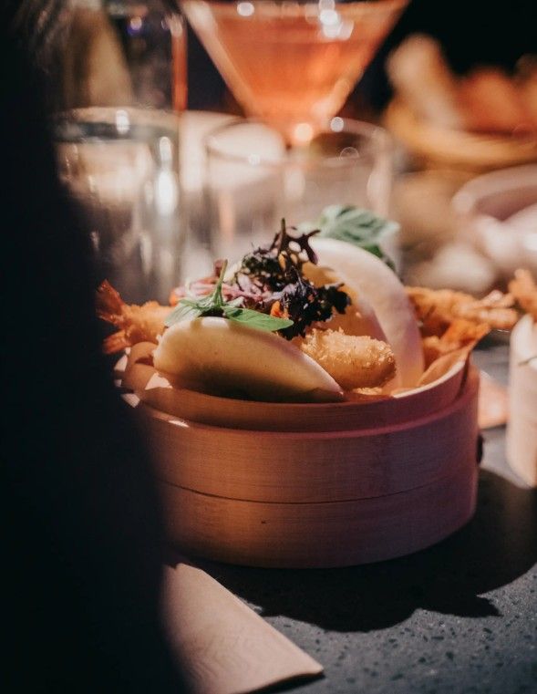Menuen inviterer til deling og nysgerrighed. Her er ikke tale om en traditionel tre-retters middag, men i stedet en række retter, der er skabt til at blive delt ved bordet – en oplevelse, der både stimulerer smagsløgene og det sociale samvær. Gæsterne kan kaste sig over saftige bao buns med crispy kylling og pickles, grillede yakitori-spyd, aromatiske curries og friske forårsruller – alt sammen lavet fra bunden med respekt for de asiatiske råvarer og traditioner.