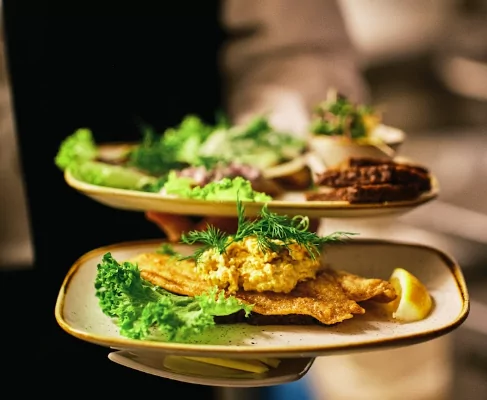 Hos Husmanns Vinstue er frokostmenuen en hyldest til det klassiske smørrebrød samt udvalgte varme retter.