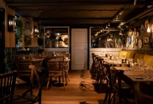 Restauranten tilbyder også mulighed for private arrangementer på første sal, hvor der er plads til op til 60 gæster. Dette område har sin egen bar og kan tilpasses efter behov, hvilket gør det ideelt til både intime middage og større selskaber.