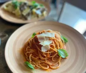 Musikken spiller italienske klassikere i baggrunden, og du kan næsten høre lyden af Vespas og latter fra de travle gader i Rom. Med plads til omkring 30 gæster indendørs og 10 udendørs, føles det som at besøge en lokal trattoria i en italiensk landsby.