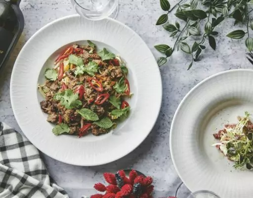 Salater som cæsarsalat og avocadosalat er også på menuen. Til dessert kan gæsterne nyde chokoladekage, gulerodskage, æble/karameltærte eller den klassiske crème brûlée.