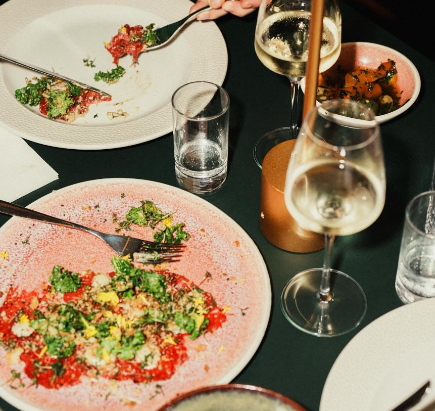 Det er et sted, der både kan være dit første date-sted og din vennegruppe-klassiker. Man mærker hurtigt, at det her ikke handler om at vende borde hurtigt eller tælle antal kuverter. Der er tid og rum til at blive hængende, bestille lidt mere og lige tage en ekstra cocktail, når tallerkenerne er ryddet.