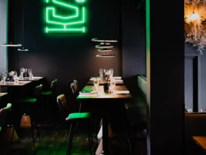 Lydbilledet i restauranten er også gennemtænkt. Der spilles behagelig, ofte jazzet eller lo-fi musik i baggrunden, som matcher det urbane, internationale islæt i maden. Akustikken er tilpas dæmpet, så man nemt kan føre samtale – også selvom man sidder tæt.