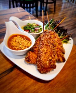 KinArai byder på et bredt udvalg af thailandske specialiteter, tilberedt med friske ingredienser og kærlighed til det thailandske køkken. Forretterne inkluderer blandt andet ‘Kai Satay’ – marinerede kyllingespyd serveret med en cremet jordnøddesauce, og ‘Paw Pia Thowt’ – hjemmelavede forårsruller fyldt med kylling og serveret med sød chilisauce.
