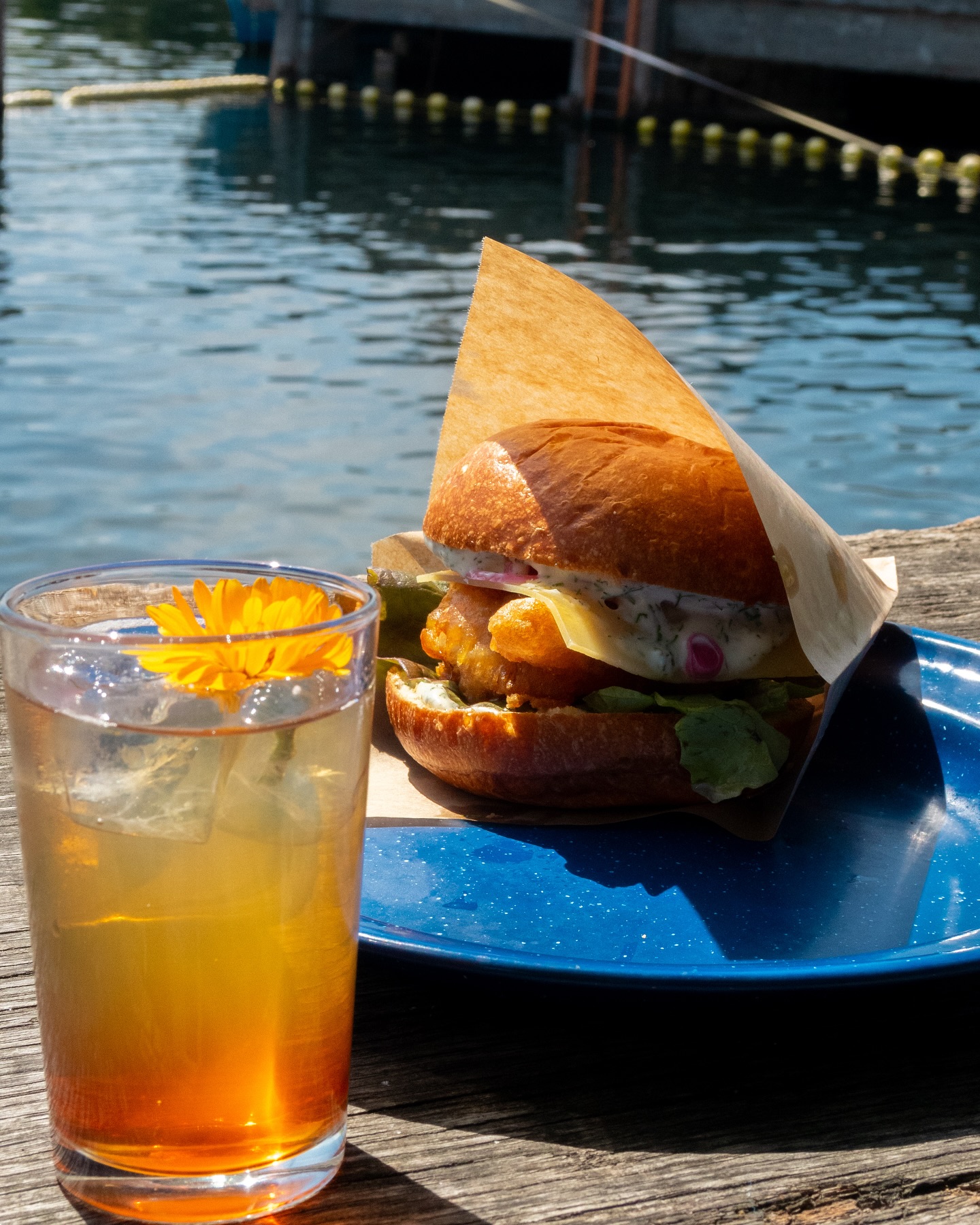 Til frokost og middag, som serveres fra kl. 12.00, kan gæsterne nyde retter som salat med grillede gulerødder og fennikel, krydret ærtehummus med grillet squash, fiskesandwich med tempurastegt torsk og grillet makrel med røget kartoffelsalat. Derudover tilbydes friske og grillede østers samt desserter som tiramisu fra Il Buco og ispinde fra Vild Is.
