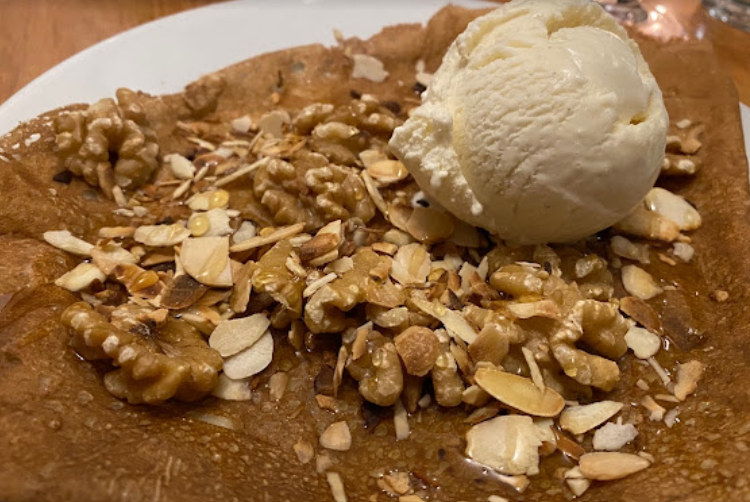 For dem med en sød tand tilbyder La Galette også et udvalg af dessertpandekager. Disse crêpes serveres med fyld som chokolade, kastanjecreme, karamelliserede æbler eller flamberet med calvados, en æblebrændevin fra Normandiet.
