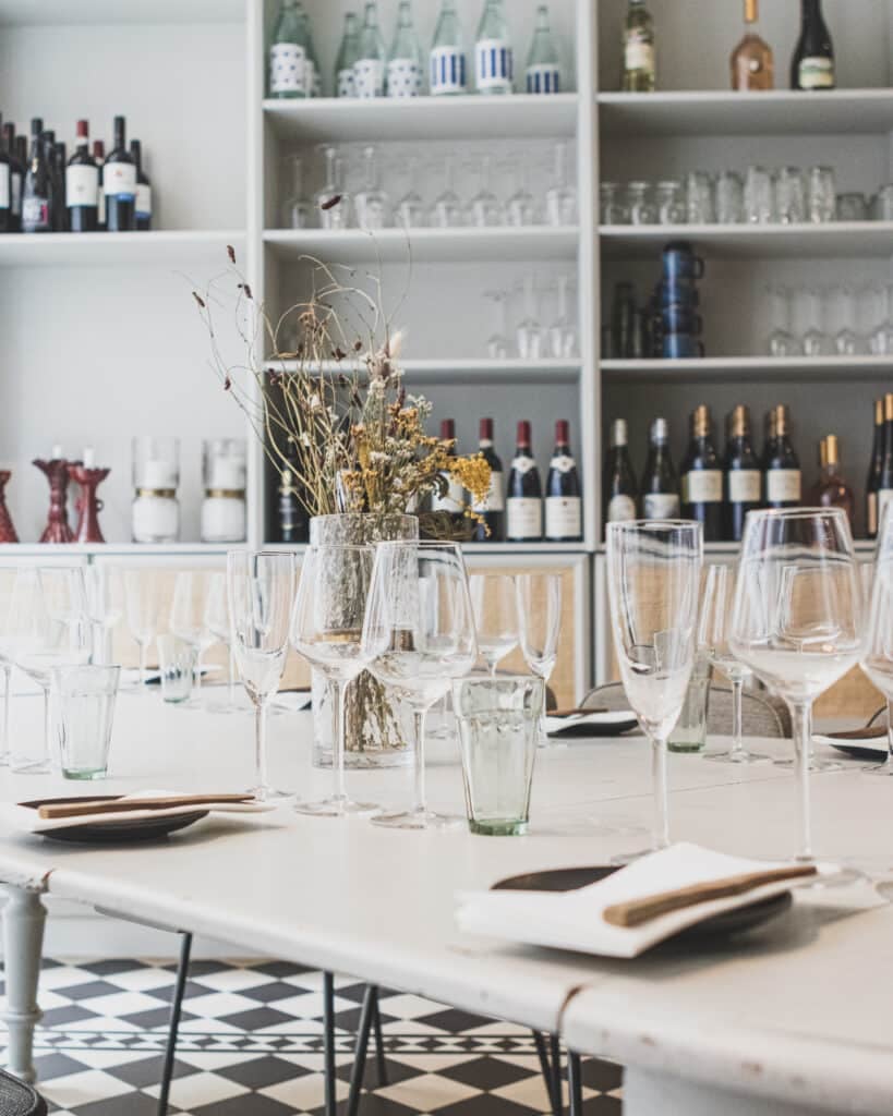 Lokalet er lyst og indbydende med en nordisk inspireret indretning. De lyse farver og minimalistiske dekorationer skaber en rolig og behagelig stemning, hvor gæsterne kan fokusere på maden og selskabet.