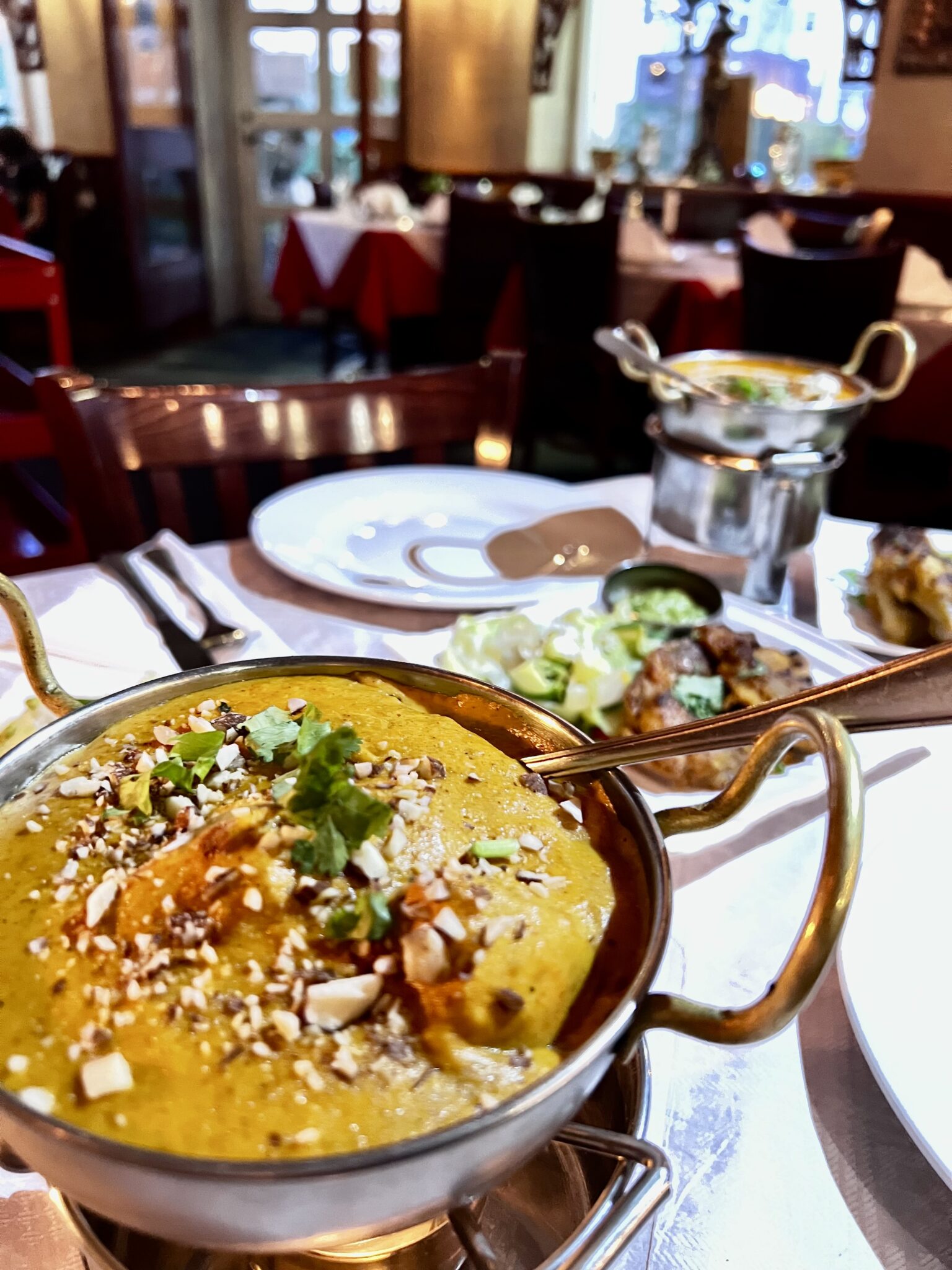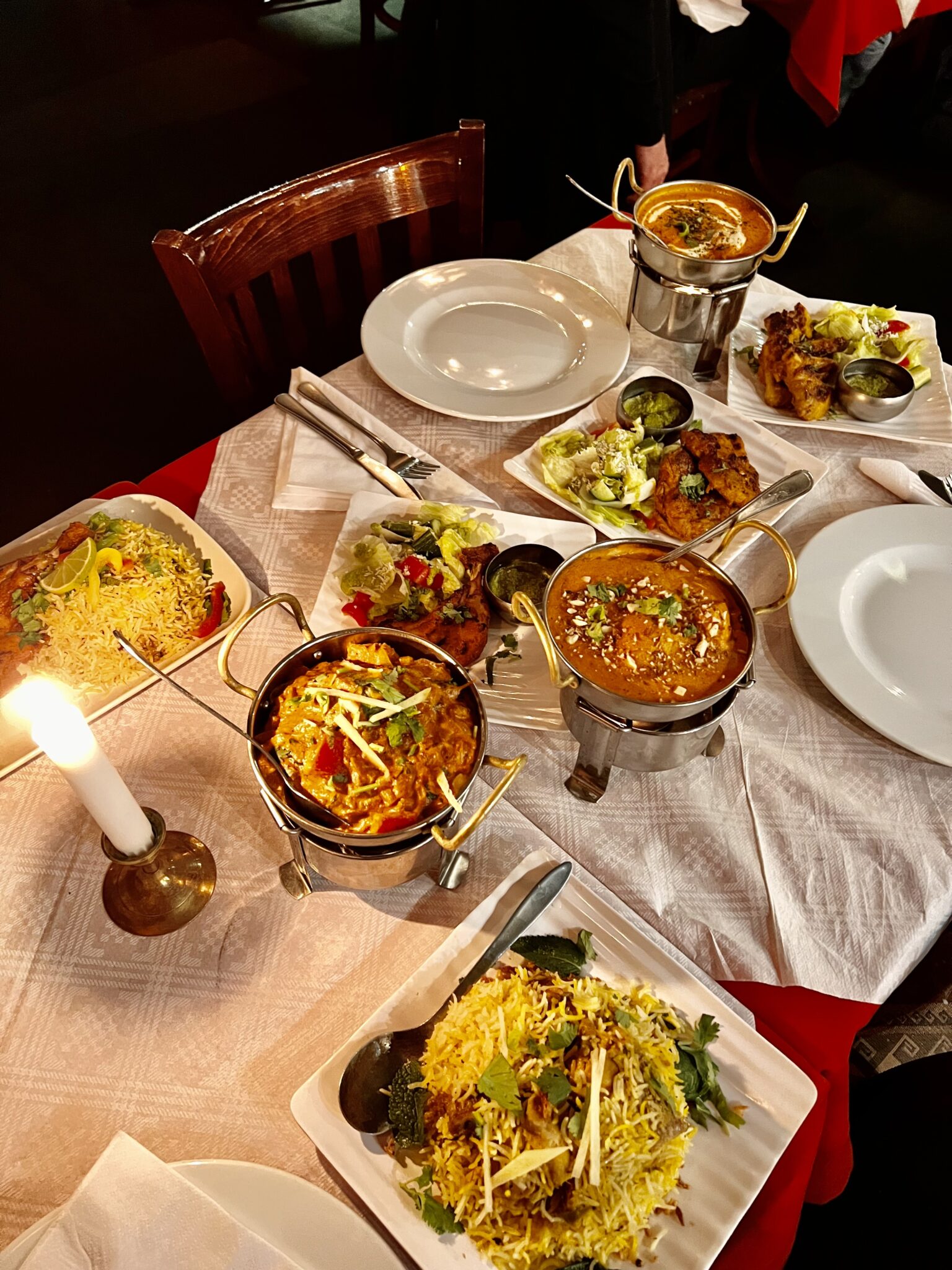 Indretningen er præget af varme farver og traditionelle indiske dekorationer, der skaber en autentisk oplevelse. Gæsterne kan nyde deres måltid i komfortable omgivelser, mens de lytter til dæmpet indisk musik, der bidrager til den afslappede stemning. Personalet er kendt for deres venlighed og imødekommenhed, hvilket gør besøget endnu mere behageligt.