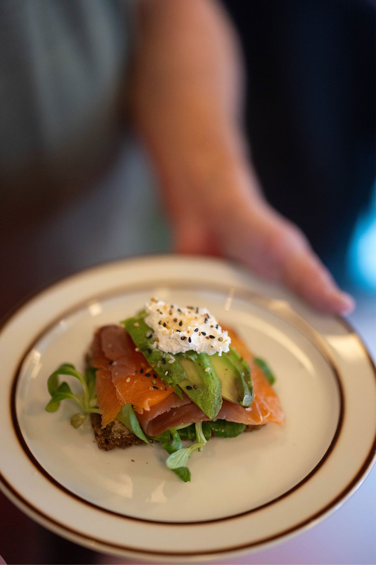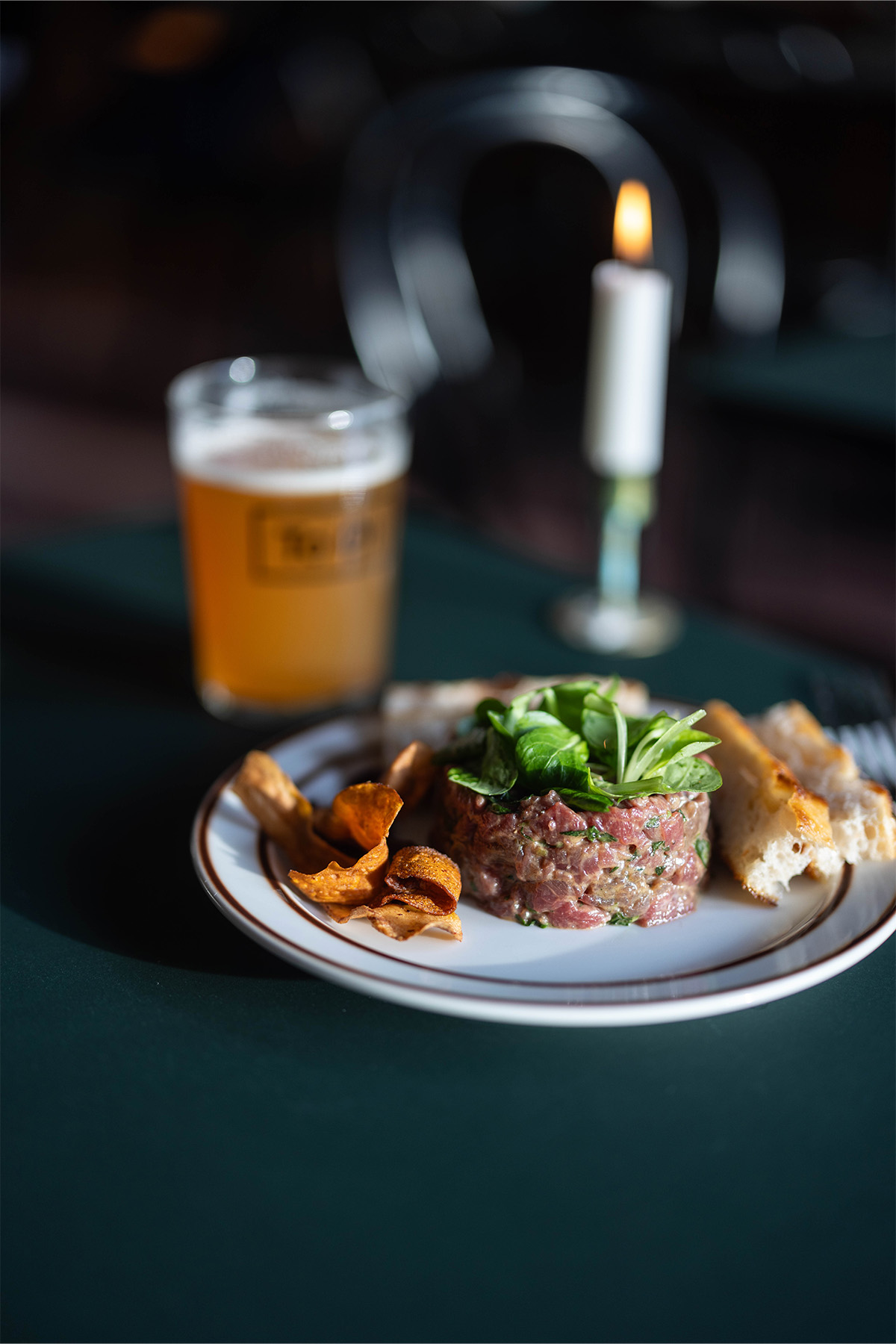Når vejret tillader det, kan gæsterne nyde udeserveringen på hjørnet af H. C. Ørsteds Vej, hvor eftermiddagssolen skaber den perfekte ramme for en kop kaffe eller et glas vin. På køligere aftener sørger terrassevarmere for, at stemningen forbliver varm og indbydende.