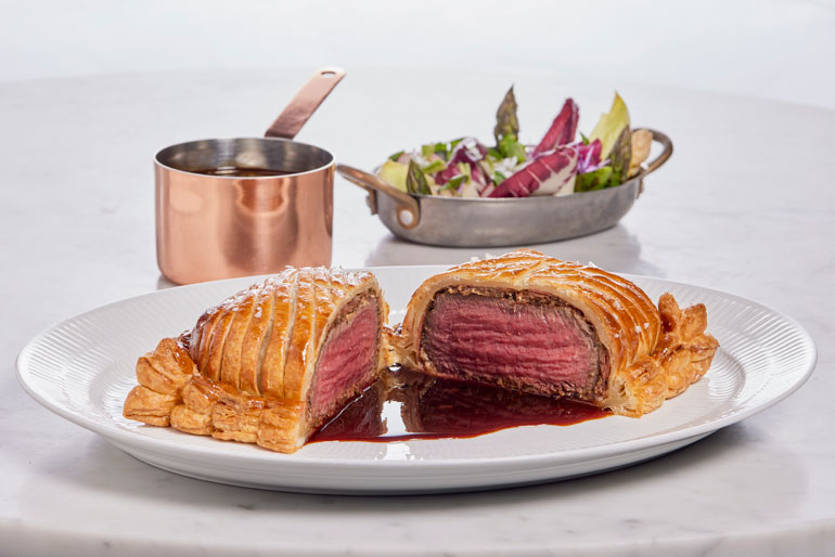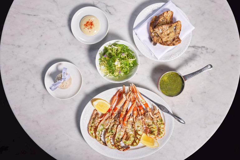 Som forret kan gæsterne for eksempel nyde en soufflé af dansk sort hummer, serveret med confiterede cherrytomater og en cremet hummerbisque, der fremhæver hummerens naturlige sødme. Et andet populært valg er den klassiske steak tartare af dansk Jersey-oksekød, ledsaget af estragon, løgpuré, tomat-kimchi-creme og sprøde kartofler.