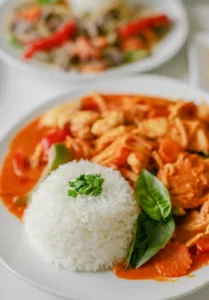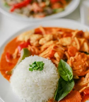 For dem, der foretrækker karryretter, tilbyder de eksempelvis Kaeng Khiew Wan, en grøn karry med bambusskud, aubergine og basilikum, eller Massaman-karry med kartofler, løg og cashewnødder.