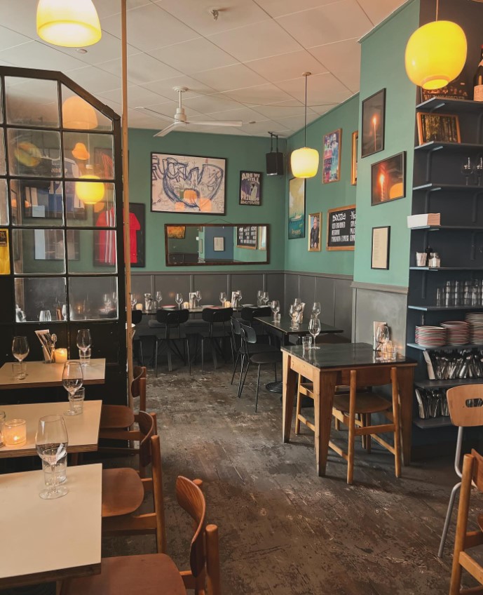 Restaurant OMAR på Nørrebro tilbyder en hyggelig og intim atmosfære, hvor gæsterne føler sig velkomne fra det øjeblik, de træder ind. Indretningen kombinerer varme farver og robuste træmøbler, hvilket skaber en hjemlig og afslappet stemning.