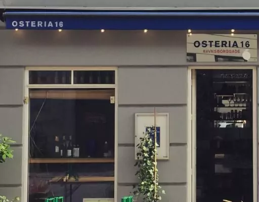 Beliggende i det livlige Nørrebro-kvarter er Osteria 16 et populært samlingspunkt for både lokale og besøgende. Den uformelle indretning og den venlige betjening gør det nemt at føle sig hjemme. Gæsterne sidder tæt ved langborde, hvilket fremmer en social og livlig stemning.