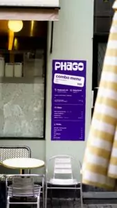 Phago Broens Gadekøkken ligger i en livlig madmarked med en fantastisk udsigt ved vandet. Derudover har de også andre filialer på Østerbro, Nørrebro og i København K.