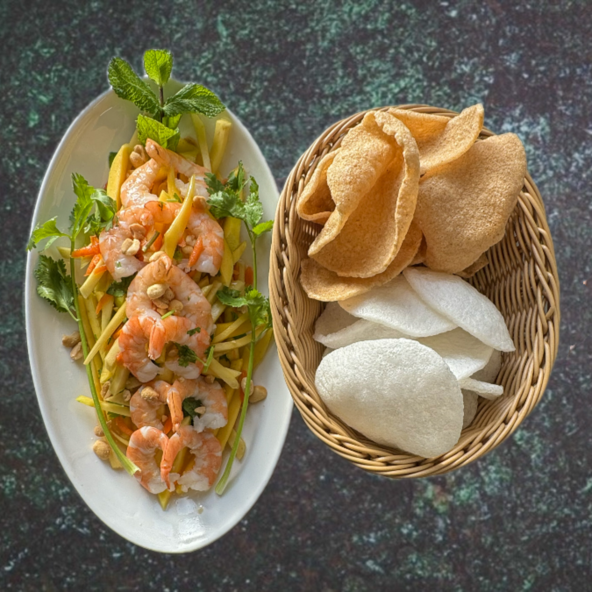 For dem, der ønsker noget lettere, tilbyder restauranten også friske sommerruller fyldt med svinekød, rejer, æg, risnudler og friske urter, alt sammen rullet ind i rispapir og serveret med en bønnesauce.
