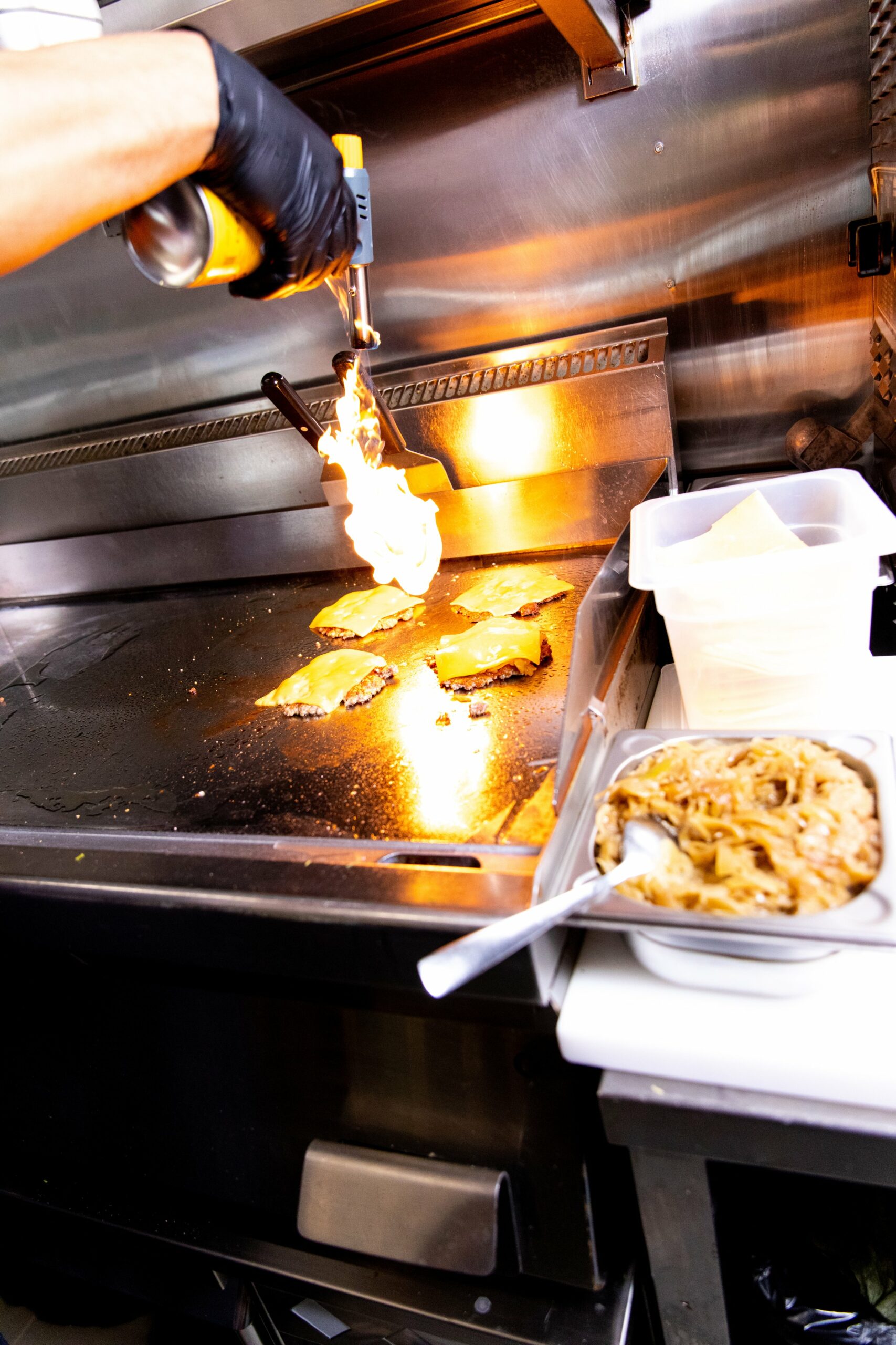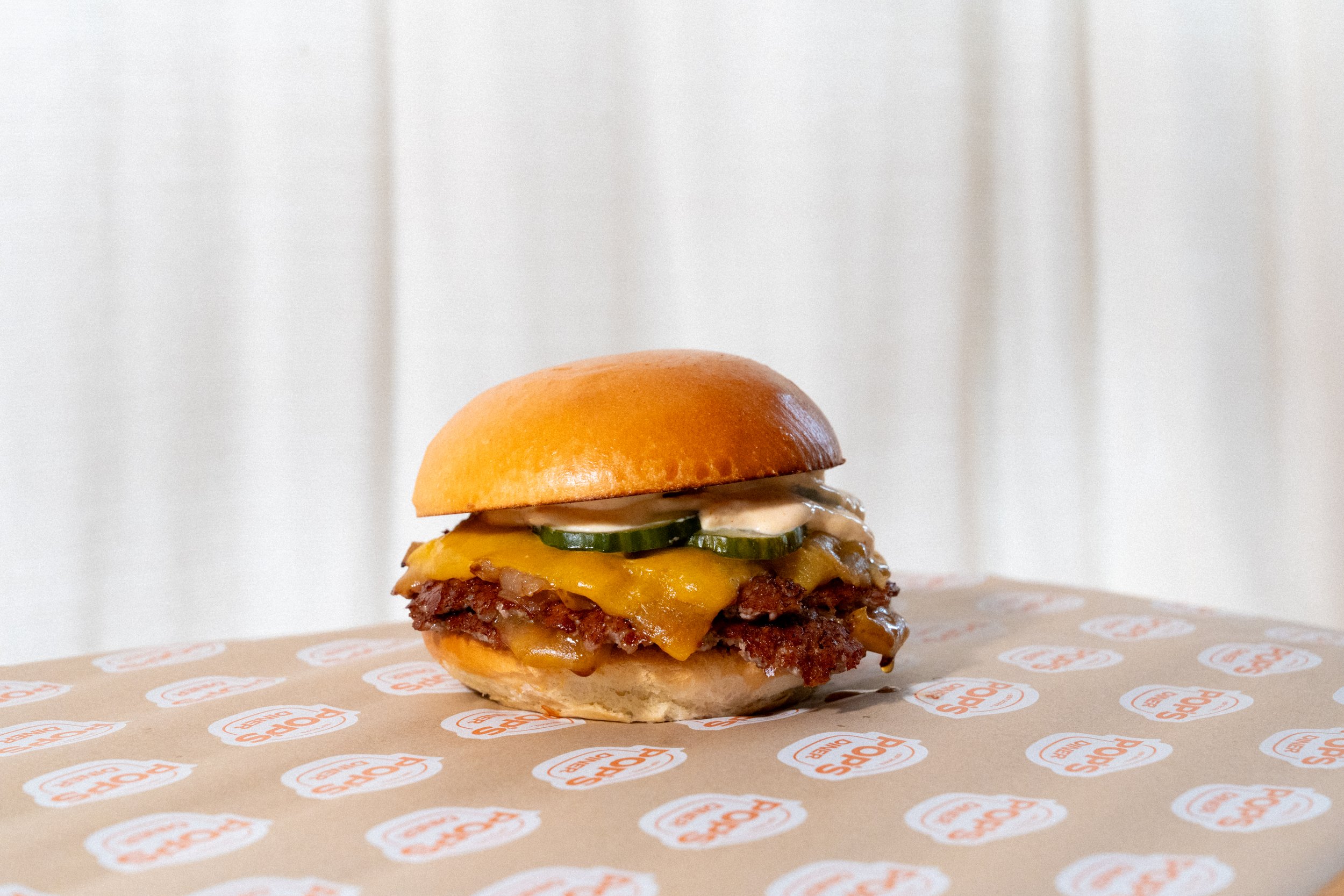 Pop’s Diner er kendt for deres “smashed” burgere, hvor kødet presses fladt på panden for at opnå en sprød stegeskorpe og saftig midte.