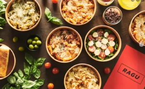 Ragu ligger på øverste etage i Fields på Arne Jacobsen Allé 12, hvor den indtager en central plads i shoppingcenterets livlige Food Lounge. Restauranten er dedikeret til frisklavet pasta, med signaturretter som Ragu Bolognese, Truffle Cream og Pesto Basilico, der kombinerer solide italienske retter med nordiske råvarer. Udover klassiske pastaretter kan gæster vælge focaccia, salater og desserter som Tiramisu og Sicilian Lemon Cheesecake, og konceptet omfatter også veganske og glutenfri varianter for at imødekomme forskellige behov. Gæster kan desuden bestille take-away eller få leveret via Wolt, så pastaen kan nydes hjemme eller på farten.