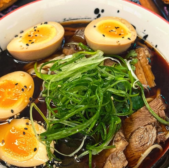 En af husets specialiteter er Tonkotsu Ramen, en hjemmelavet ramen serveret i en cremet og rig benbouillon. Denne skål er omhyggeligt toppet med krydret cha-shu (marineret svinekød), kamaboko (fiskekage), nori (tang), et perfekt pocheret æg og friske spidskål.