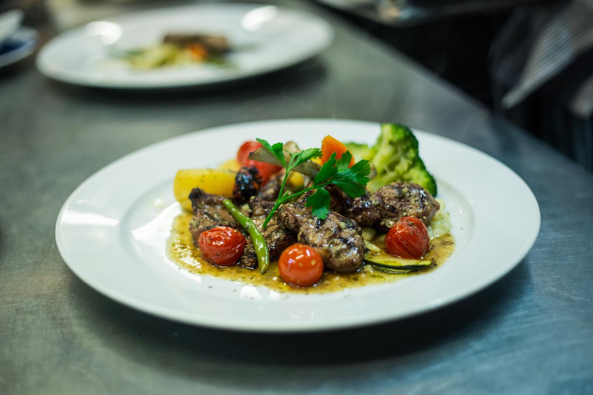 Blandt hovedretterne finder man den klassiske Moussaka, en ovnbagt ret med lag af aubergine, kartoffel, krydret oksekød og béchamelsauce. For dem, der foretrækker fisk og skaldyr, tilbyder Garides kæmperejer i en hvidløg- og tomatsauce med feta. Kødelskere kan nyde Stifado, en simreret med mørt oksekød og perleløg i rødvinssauce.